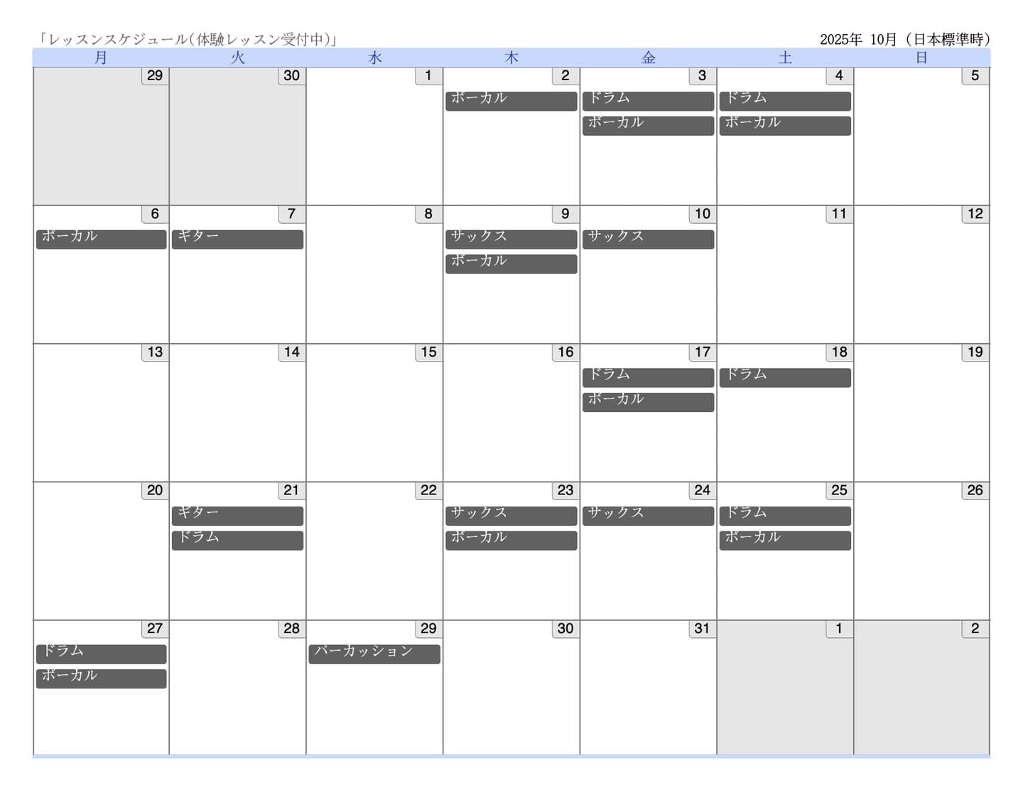 | レッスン料 (月額) |