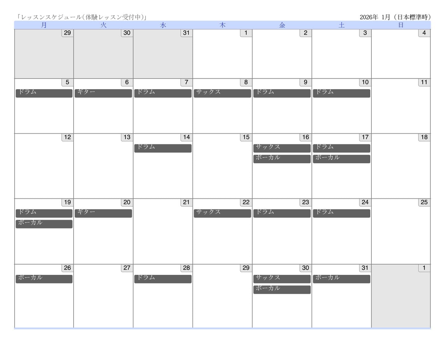 *レッスン回数は担当する講師により異なります(*選択制ではありません)